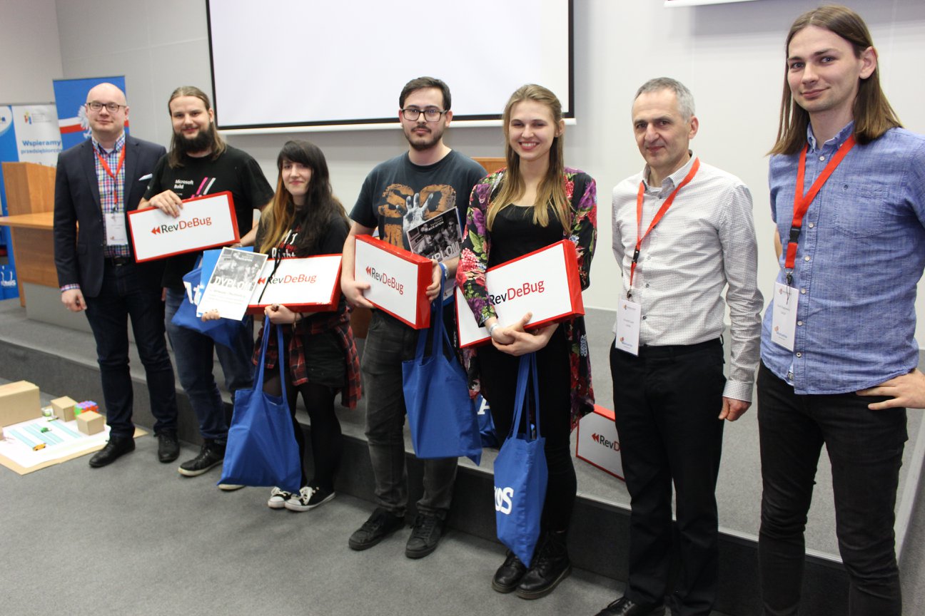 Pierwsze miejsce – zespół w składzie: Alicja Gajos, Katarzyna Chmielewska, Hubert Kuffel i Damian Tasevski – za opracowanie aplikacji wspomagającej rozwiązywanie różnych problemów wymagających interwencji służb miejskich, np.: poszukiwanie właścicieli zagubionych i znalezionych zwierząt czy pozostawionych w nieodpowiednim miejscu samochodów.